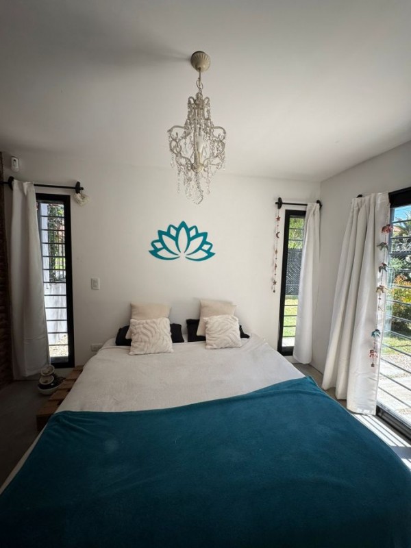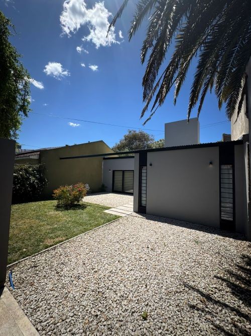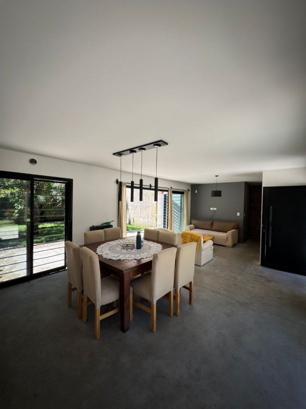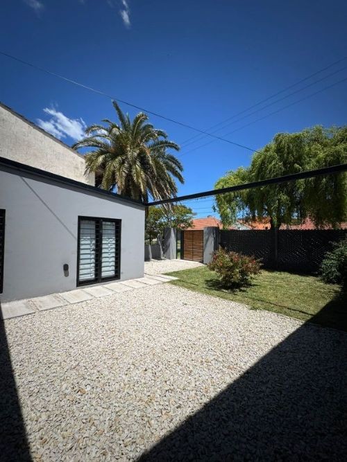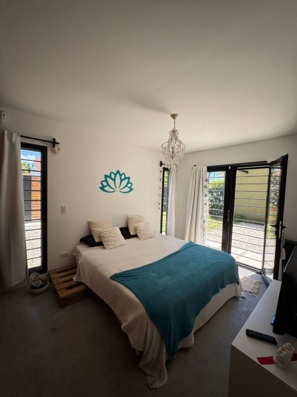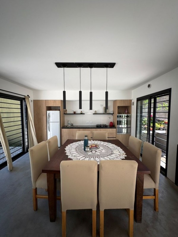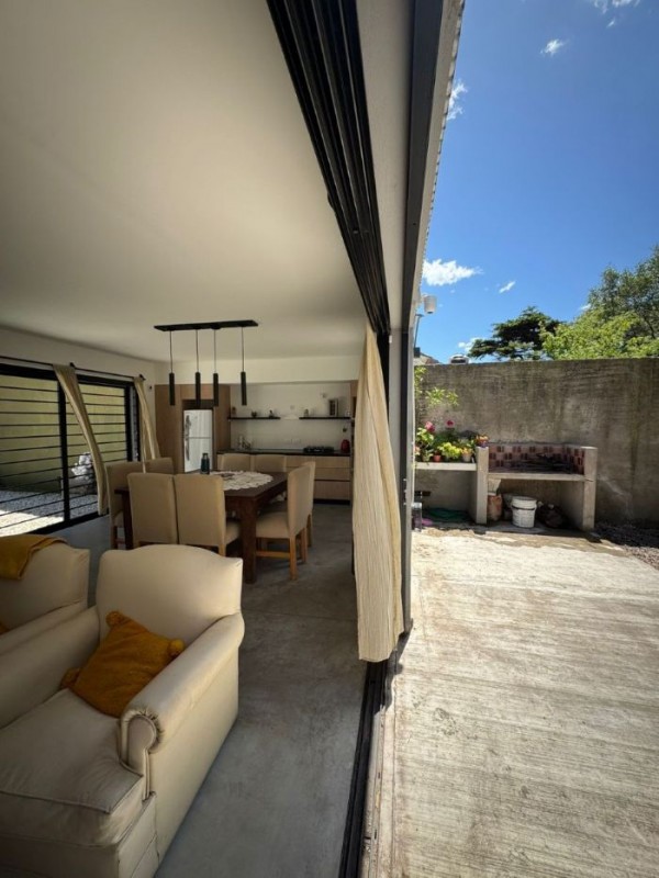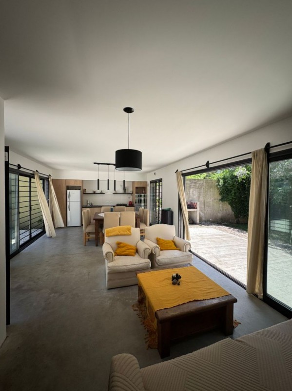 Salón comedor estilo moderno con salida al exterior. Cocina integrada con salida al jardín. Lavadero independiente. Dormitorio con vestidor y salida al exterior. Baño con ventilación natural. Parque al frente y atrás. Acceso vehicular con portón manual (posibilidad de automatizar). El vestidor pordia ser un segundo dormitorio.