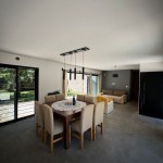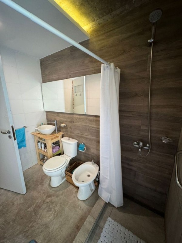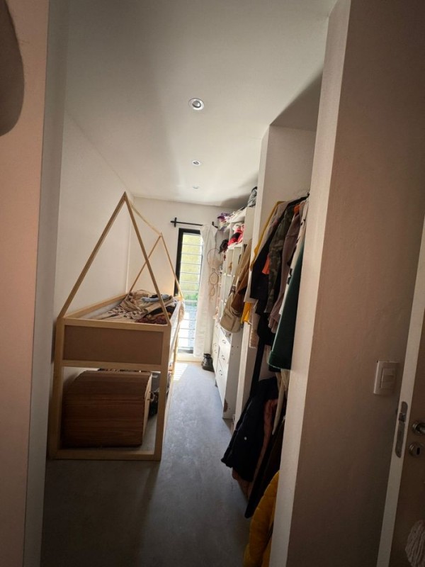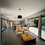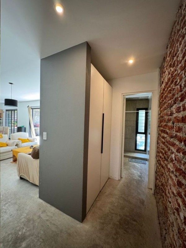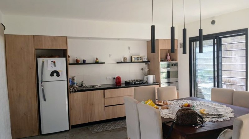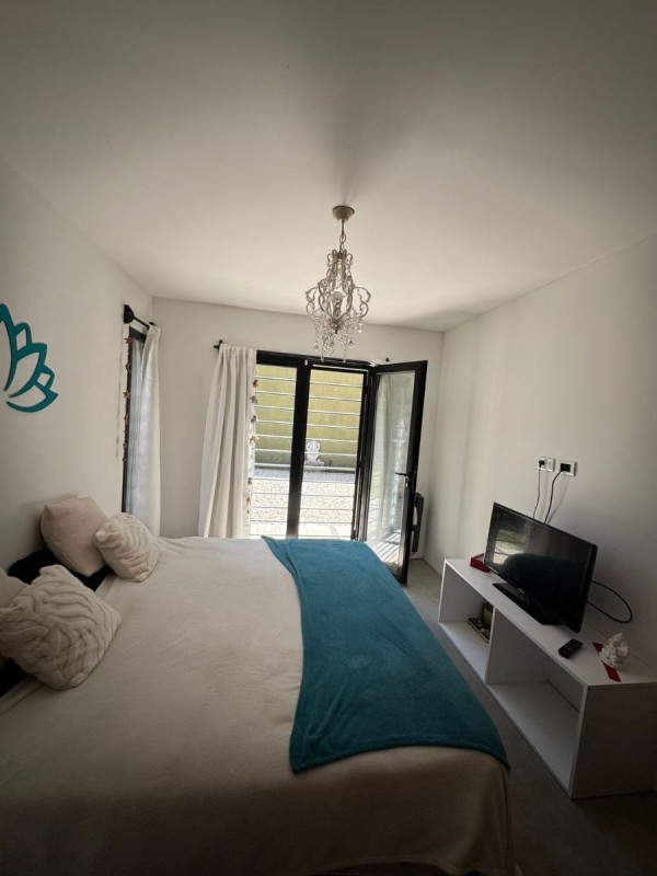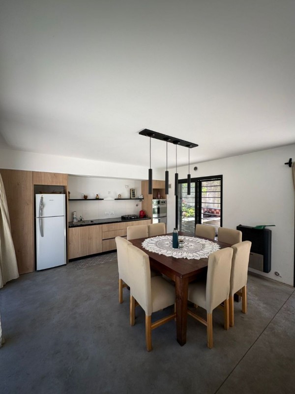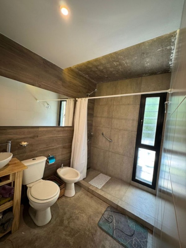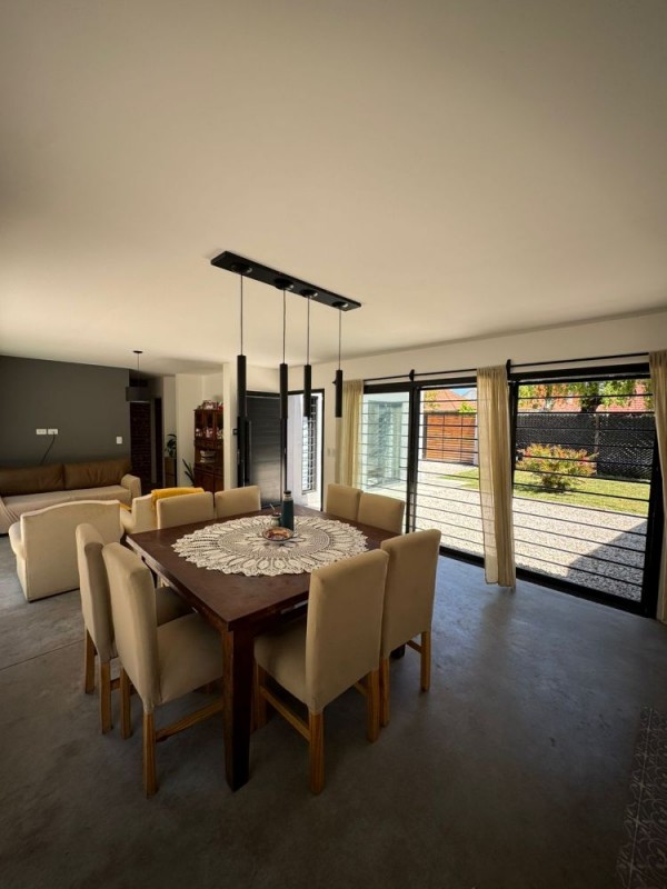 Salón comedor estilo moderno con salida al exterior. Cocina integrada con salida al jardín. Lavadero independiente. Dormitorio con vestidor y salida al exterior. Baño con ventilación natural. Parque al frente y atrás. Acceso vehicular con portón manual (posibilidad de automatizar). El vestidor pordia ser un segundo dormitorio.