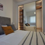 Living comedor con salida al balcón, TV instalada y tomas USB para carga de dispositivos. Cocina separada, equipada con: cocina de acero inoxidable, purificador Spar, heladera con congelador, lavarropas automático, mesada de cuarzo (material de calidad superior al granito). Lavadero separado, habitación de servicio y baño de servicio que funciona como toilette. Dormitorio principal con suelo de parquet y placard empotrado con iluminación LED interior. Baño completo con mampara corrediza de vidrio templado.