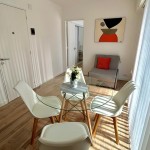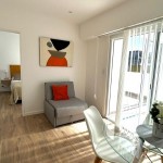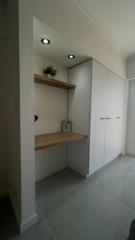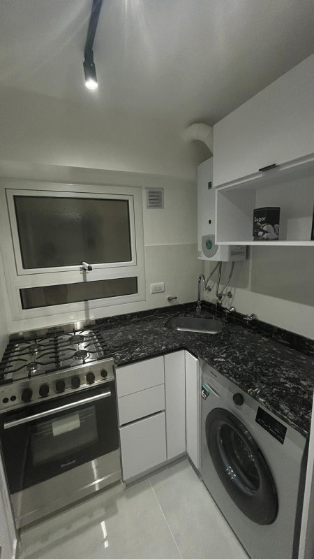 Living comedor con salida a la terraza, totalmente amoblado, con TV y toma USB para carga de dispositivos. Cocina separada con espacio para lavarropas. Equipada con: heladera con congelador, cocina de acero inoxidable, lavarropas automático, mesada de cuarzo, pileta Johnson. Dormitorio con placard y salida a la terraza. Baño completo con mampara de vidrio templado y ducha en desnivel, un detalle que aporta mayor confort.