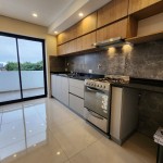 Salón comedor con ventanal al frente, que aporta muy buena luz natural. Cocina separada, con amoblamiento a medida, mesada de granito y salida a balcón terraza al contrafrente. Tocador de recepción. Espacio de guardado bajo escalera.