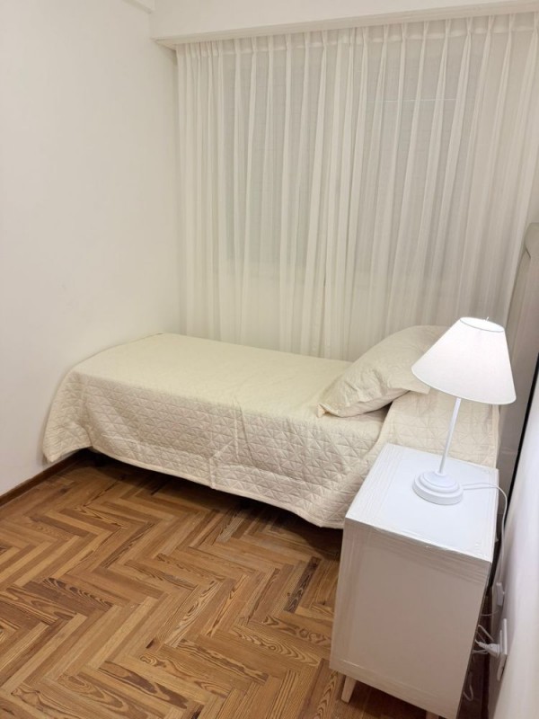 Amplio living comedor con salida a balcón al frente, lo que le aporta muy buena luminosidad. Dispone de dos dormitorios: el principal al frente con excelente espacio de guardado, y un segundo dormitorio al contrafrente, también con placard. Baño completo ubicado entre ambos dormitorios. La dependencia funciona como tercer dormitorio, con ventana al pulmón del edificio y placard. Además, cuenta con baño con ducha que también puede utilizarse como toilette de recepción. Cocina separada y lavadero independiente.